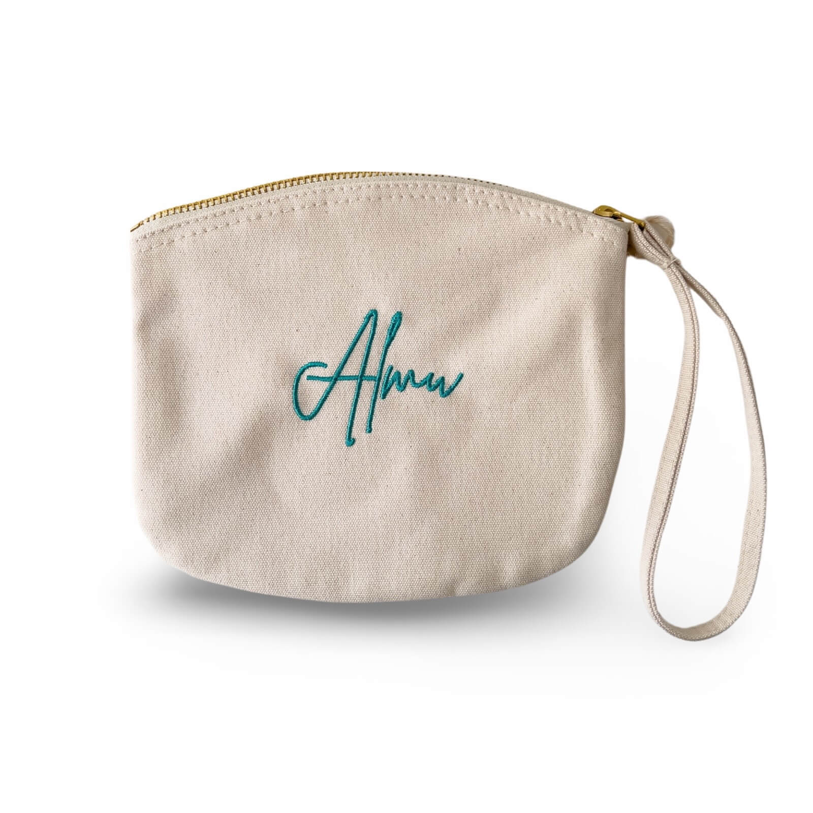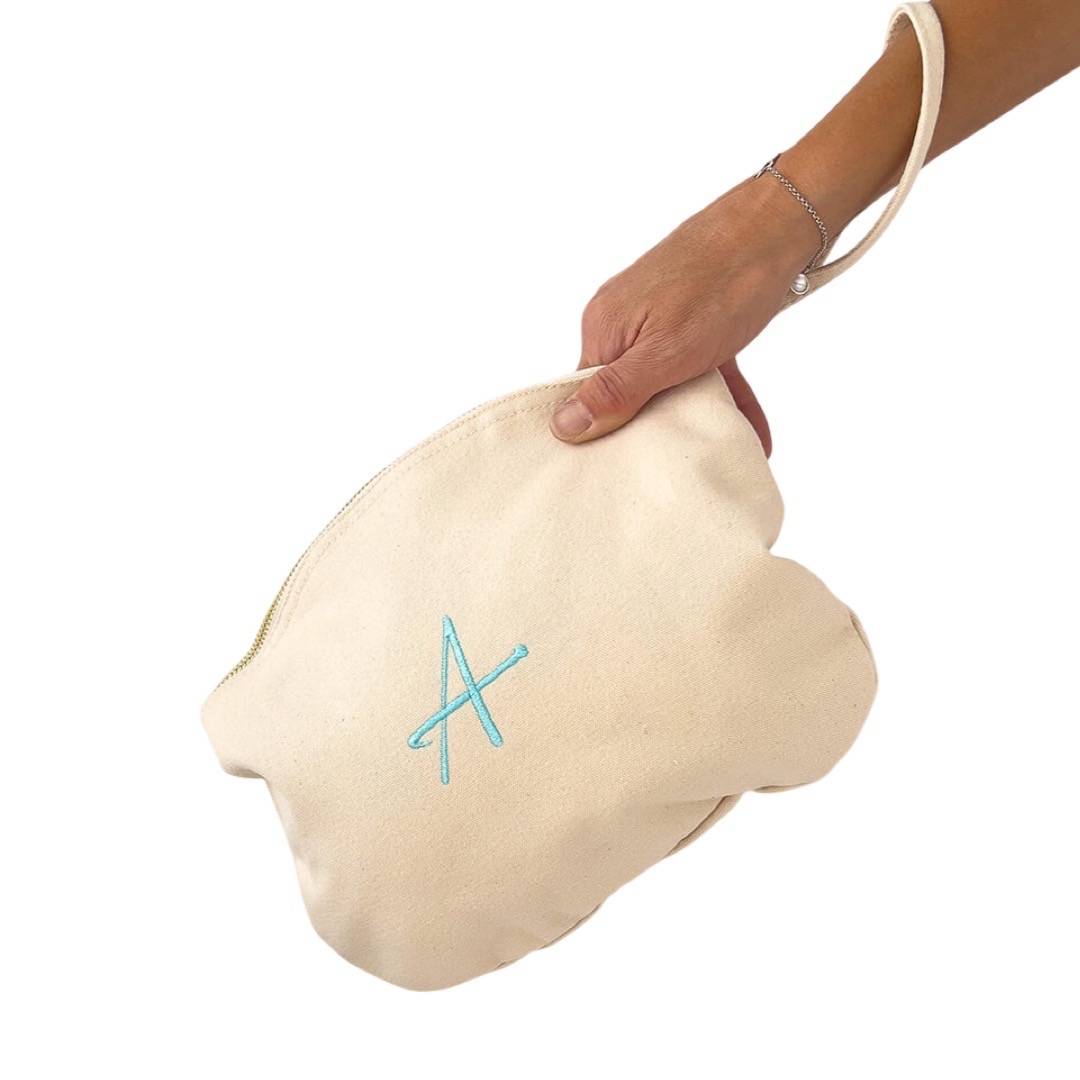 Neceser orgánico personalizado en color natural bordado con iniciales. Un regalo ideal personalizado para cualquier ocasión, desde un regalo, hasta detalle de bautizo, comunión…