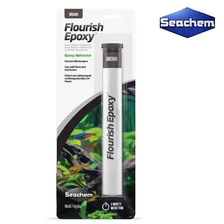 Seachem Flourish Epoxy Gris 114 gramos, es un adhesivo bi-componente para fijar los materiales sólidos del hardscape en el acuario.